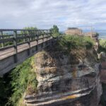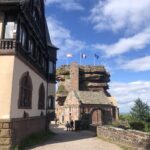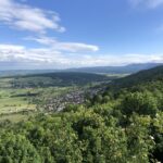 Comme son nom l’indique, le restaurant « Là-Haut » se situe en altitude, et plus précisément à 450 mètres sur les hauteurs de Saverne. Implanté au cœur du Château du Haut-Barr, il propose aux touristes comme aux locaux venus visiter les ruines médiévales une jolie pause gourmande. Alors avant de passer à table, n’hésitez pas à vous promener au sein de l’édifice, également appelé « l’œil de l’Alsace ». Il doit ce surnom au panorama incroyable qu’il offre sur la plaine d’Alsace, les Vosges, la Forêt Noire, et même, par temps dégagé, sur la Cathédrale de Strasbourg ! Le Château du Haut-Barr est en effet juché sur trois grands rochers. Pour atteindre le point culminant du site, il vous faudra gravir l’escalier en métal à l’arrière du restaurant, et traverser une passerelle en bois appelée « Pont du Diable ». Mon conseil si vous êtes sujet au vertige : respirez profondément, regardez droit devant vous et, une fois arrivé à destination : profitez ! La vue y est exceptionnelle.