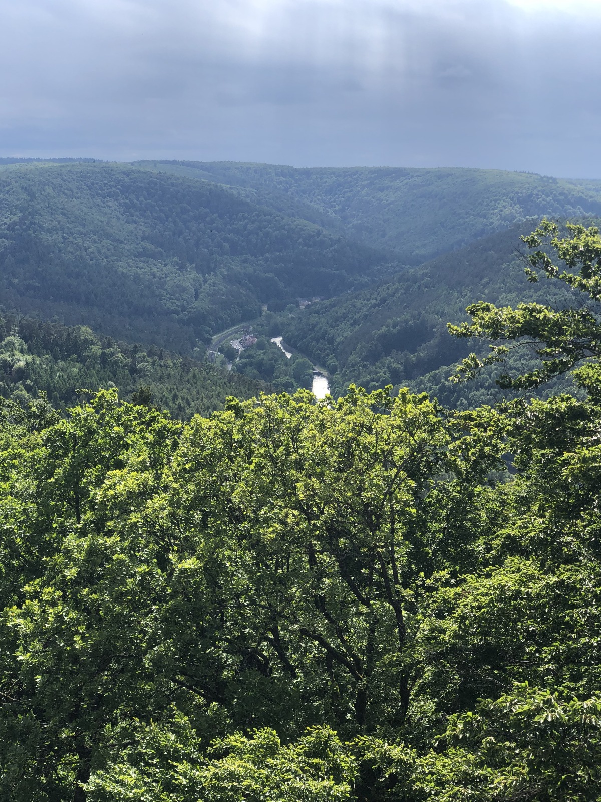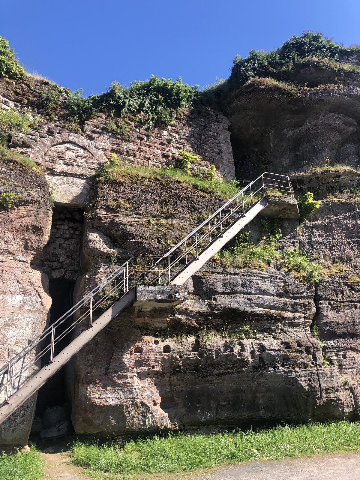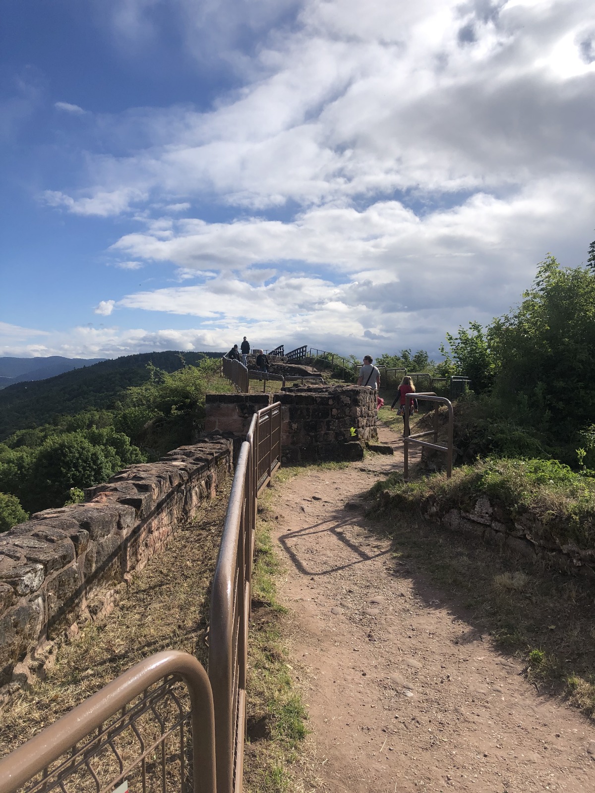 Comme son nom l’indique, le restaurant « Là-Haut » se situe en altitude, et plus précisément à 450 mètres sur les hauteurs de Saverne. Implanté au cœur du Château du Haut-Barr, il propose aux touristes comme aux locaux venus visiter les ruines médiévales une jolie pause gourmande. Alors avant de passer à table, n’hésitez pas à vous promener au sein de l’édifice, également appelé « l’œil de l’Alsace ». Il doit ce surnom au panorama incroyable qu’il offre sur la plaine d’Alsace, les Vosges, la Forêt Noire, et même, par temps dégagé, sur la Cathédrale de Strasbourg ! Le Château du Haut-Barr est en effet juché sur trois grands rochers. Pour atteindre le point culminant du site, il vous faudra gravir l’escalier en métal à l’arrière du restaurant, et traverser une passerelle en bois appelée « Pont du Diable ». Mon conseil si vous êtes sujet au vertige : respirez profondément, regardez droit devant vous et, une fois arrivé à destination : profitez ! La vue y est exceptionnelle.